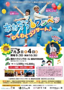 鹿児島霧島市で開催する「あおぞらワッペン わくわくコンサート」に出演します。 〇日時:7/3(木)・4(金)10:30(開場:9:30)〇場所:国分ハウジングホール〇チケット:大人1,500円(税込)子ども1,000円(税込)>>詳しくはこちらをご覧ください