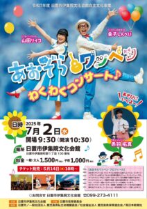 鹿児島県日置市で開催する「あおぞらワッペン わくわくコンサート」に出演します。 〇日時:7/2(水)10:30(開場:9:30)〇場所:日置市伊集院文化会館〇チケット:大人1,500円(税込)子ども1,000円(税込)>>詳しくはこちらをご覧ください